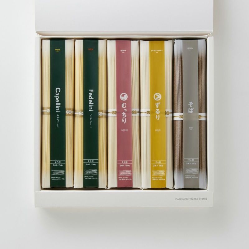 素麺以外のバラエティ豊かな麺を5種類組み合わせました。 色々なコシの強い手延べの麺をお楽しみ頂けます。 マットな質感のBOXにシックなグレーの帯を巻き、高級感のあるギフトセットです。※ギフトBOX商品は包装紙による包装をあえて行っておりません。のし紙は全て「外のし」の形となります。