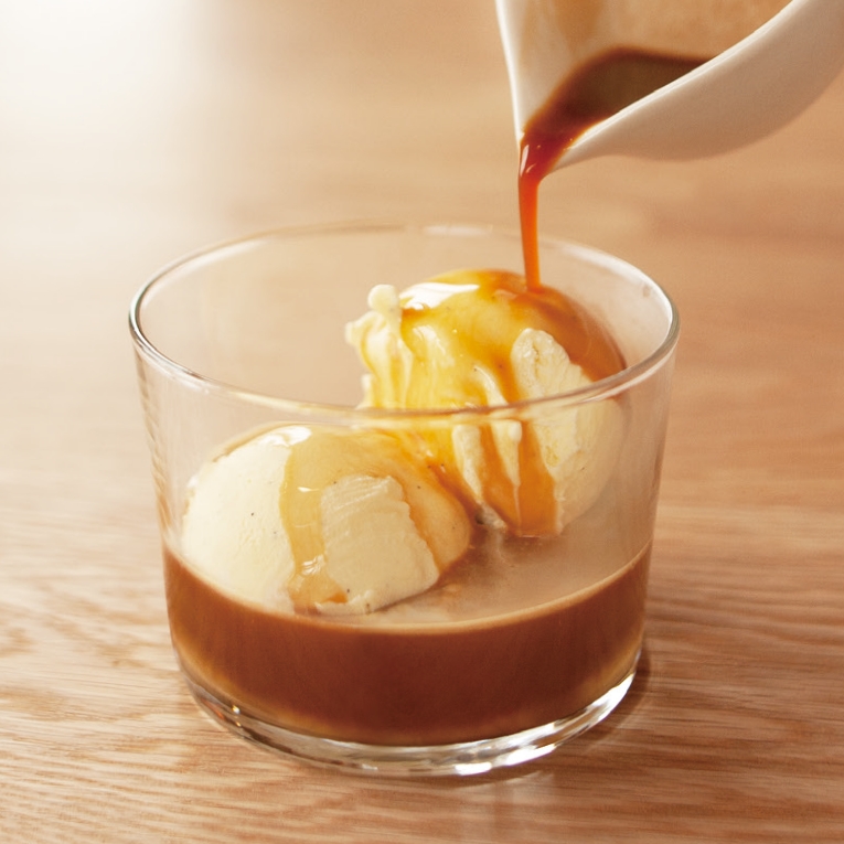 ローストアーモンドの風味を感じる濃厚なエスプレッソをバニラアイスにかけたスイーツです。