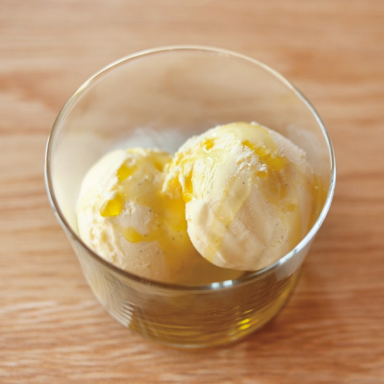 イタリアから直輸入したオリーブオイルをたっぷりとバニラアイスにかけました。爽やかな香りとバニラの甘みが絶妙です。オイルは数種類からお選び頂けます!