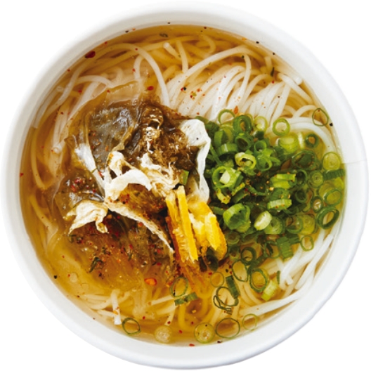 いりこと干しエビの出汁に梅酢を加えて、さっぱりと仕上げた上品な味わいの塩つゆ。